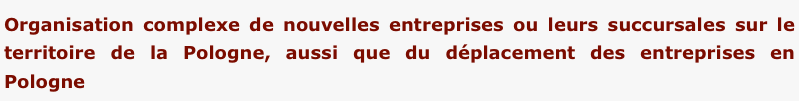 Nous réalisons ces tâches, en fonction de la commande, par reprise totale ou partielle des efforts juridiques et organisationnelles liées a transfert et déménagement de l'entreprise. L'étendue de nos activités comprend:
